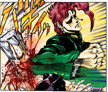 His reason for joining the Joestar Group is for both fighting evil, as he mirrors Jotaro's own explanations for saving his life,[15] and of course a sense of debt toward Jotaro for saving his life. Thus Kakyoin is also a brave individual, willingly participating in the dangerous journey to Egypt, and is also able to keep his nerves even in the direst situations such as having been punched through by The World.